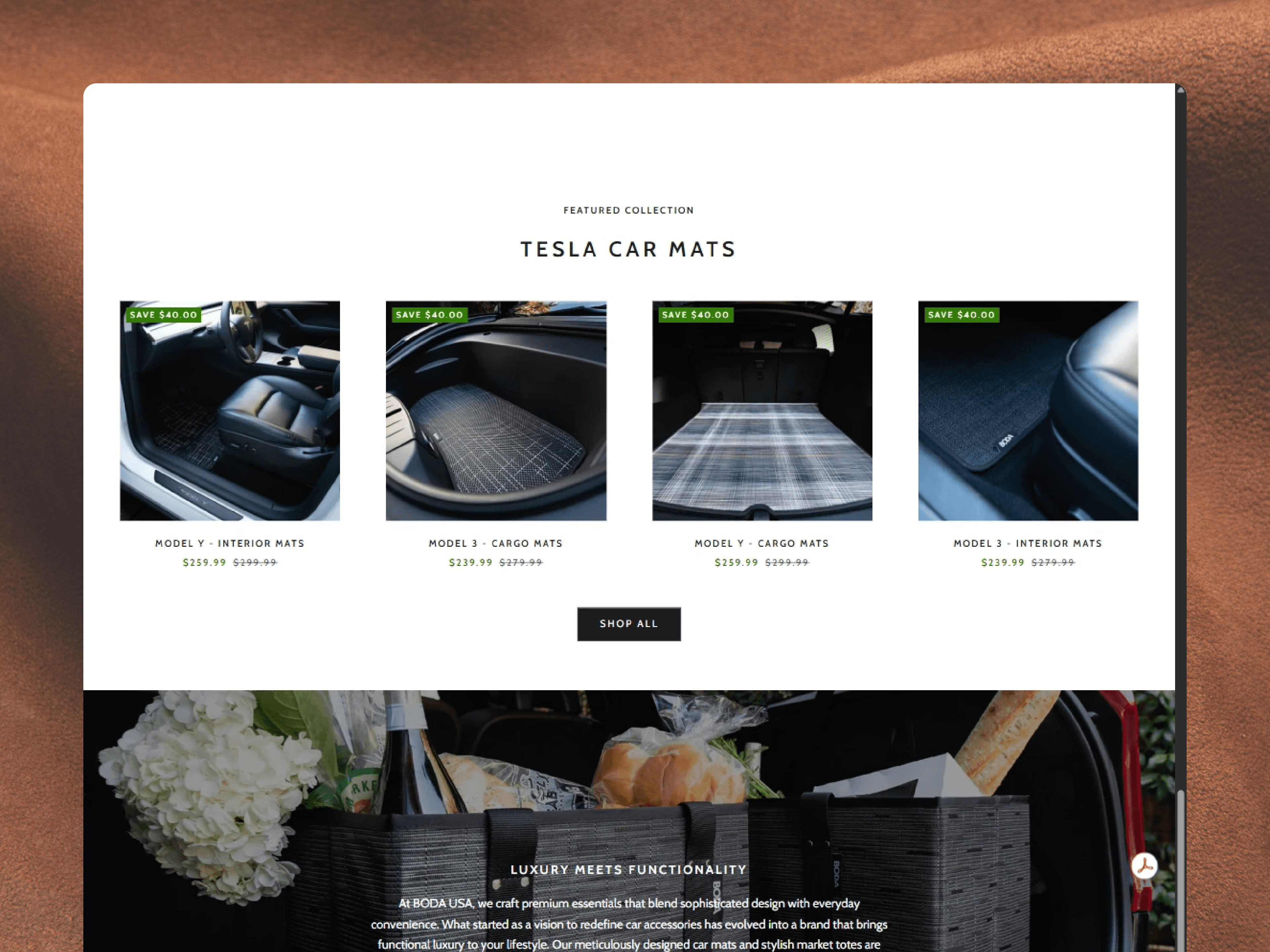The new website for BODA successfully captures the essence of its "Functional Luxury" brand. The updated design and improved user experience have created a sophisticated digital presence that reflects the quality of their products. By focusing on key elements like color, typography, and site structure, we delivered a polished and intuitive shopping experience that is set to engage customers and drive sales. The new site provides a strong foundation for BODA's continued growth, reinforcing brand loyalty and expanding its reach.