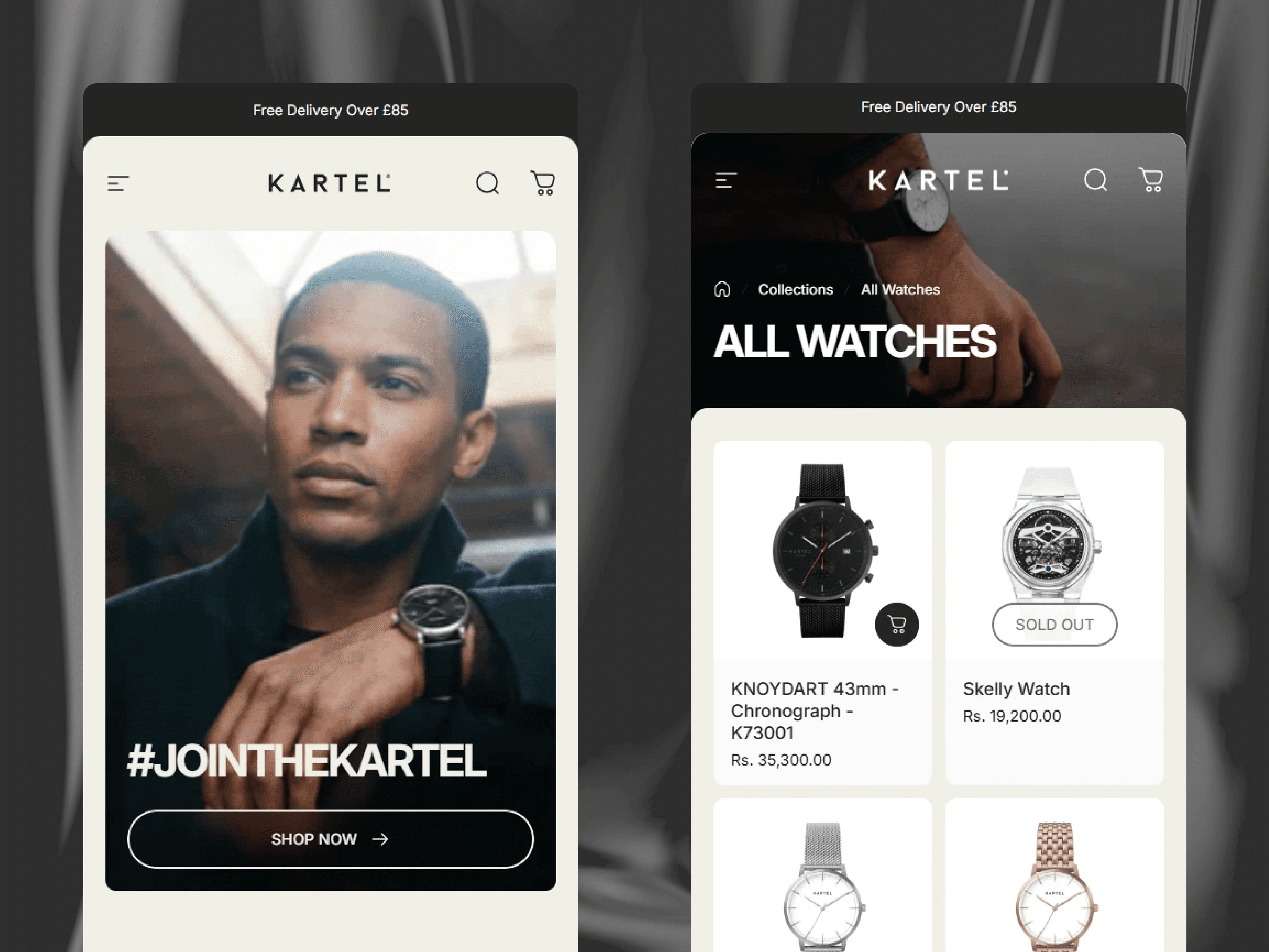 Kartel Watches faced limitations with their existing e-commerce platform. Looking for a fresh Shopify store design and a solution to support faster growth, they partnered with us for a complete redesign and rebuild.