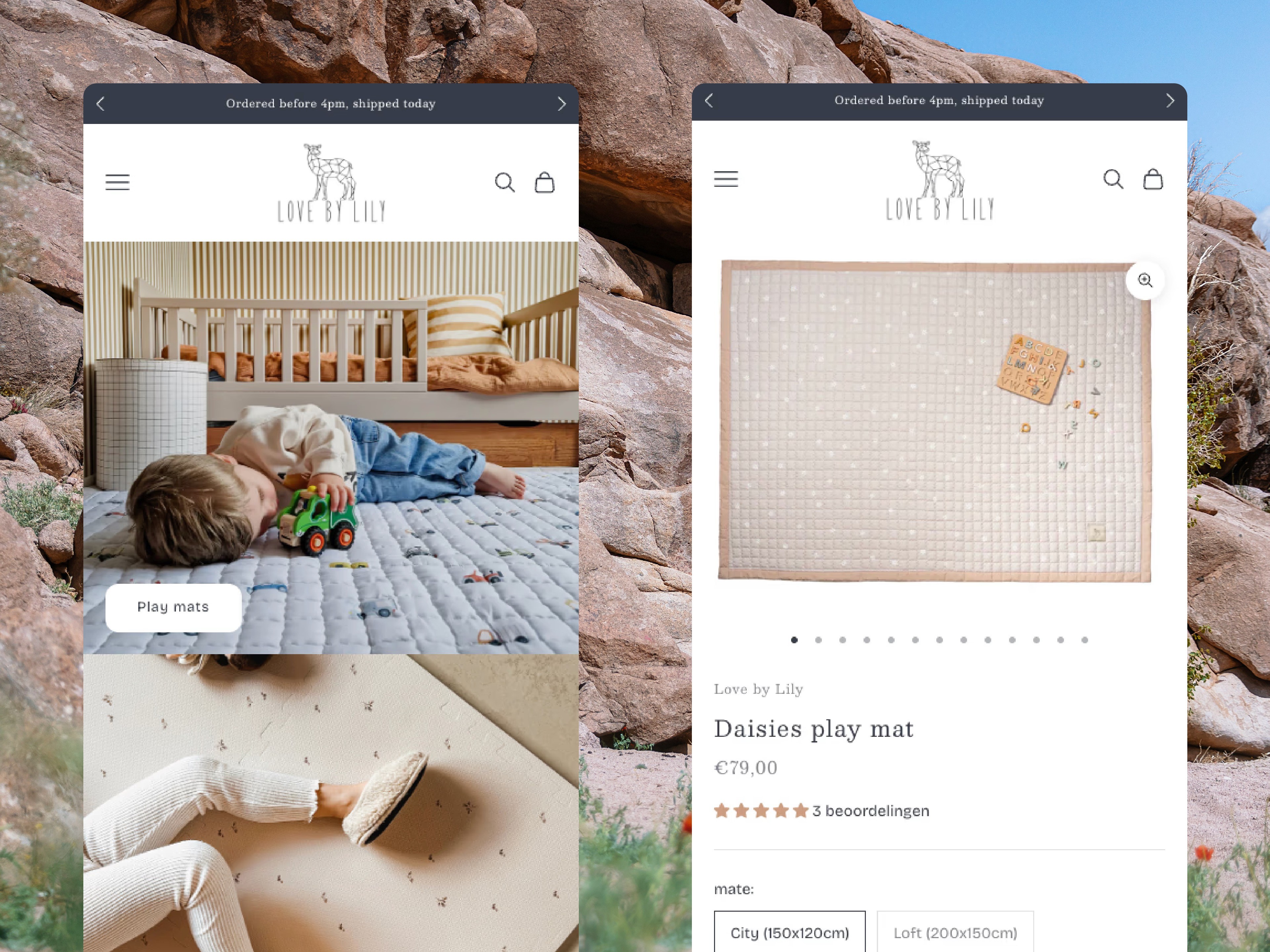 Love by Lily is a Dutch lifestyle brand for mothers and children, founded in 2020 by Jessica, a mother of two and the brand’s Creative Director. While searching for baby products that were sustainable, stylish, and genuinely practical, Jessica identified a clear gap in the market. She designed a soft, spacious play mat that was safe and comfortable for children, while blending effortlessly into modern interiors.