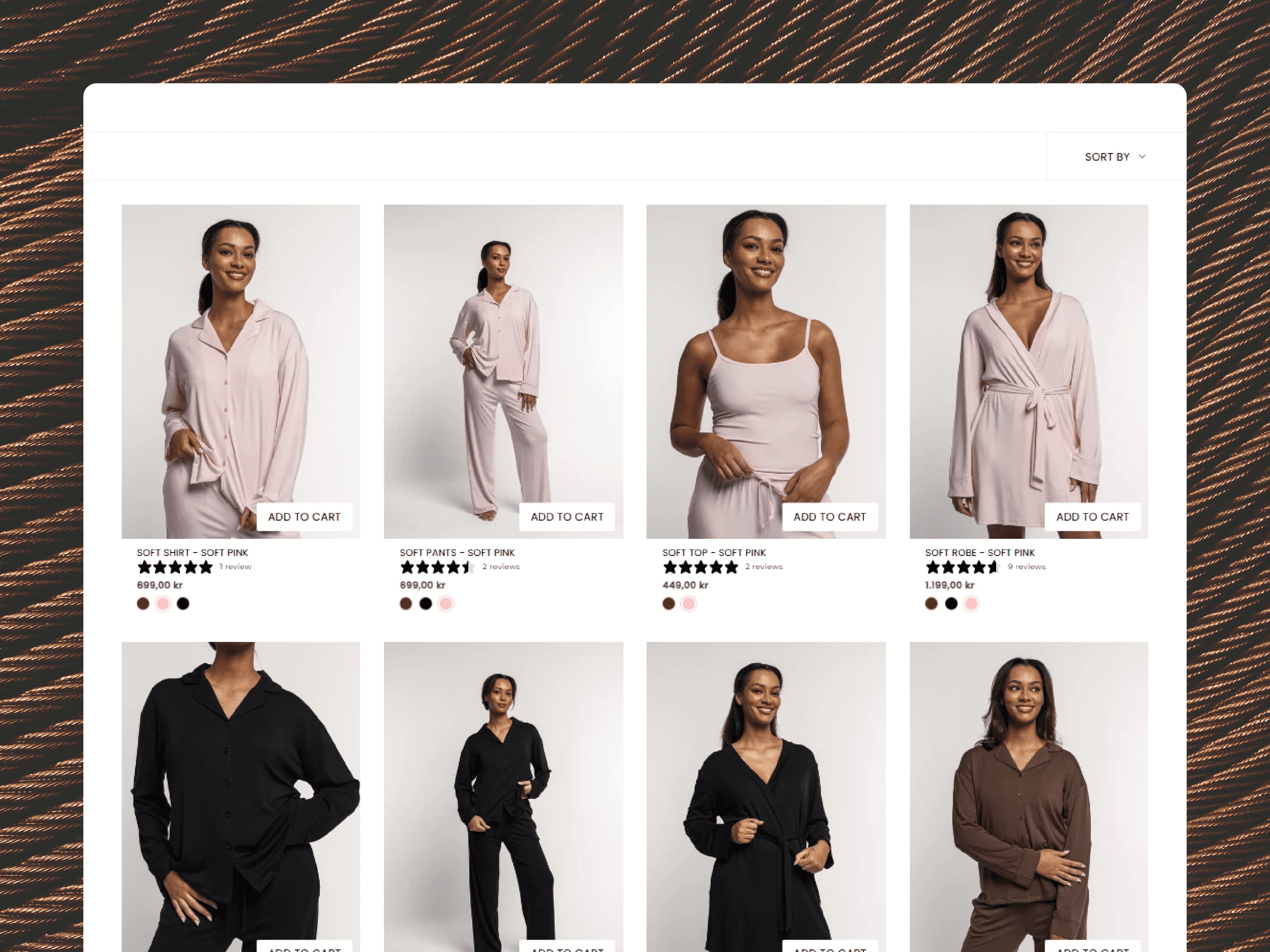 The catalog spanned loungewear, activewear, and lifestyle accessories, each with multiple colorways and sizes. Filtering had to feel effortless. Search had to predict intent. Nothing could crowd the clean aesthetic that defined the brand.