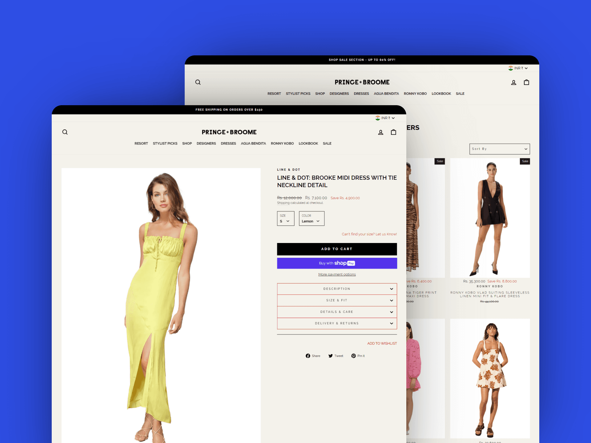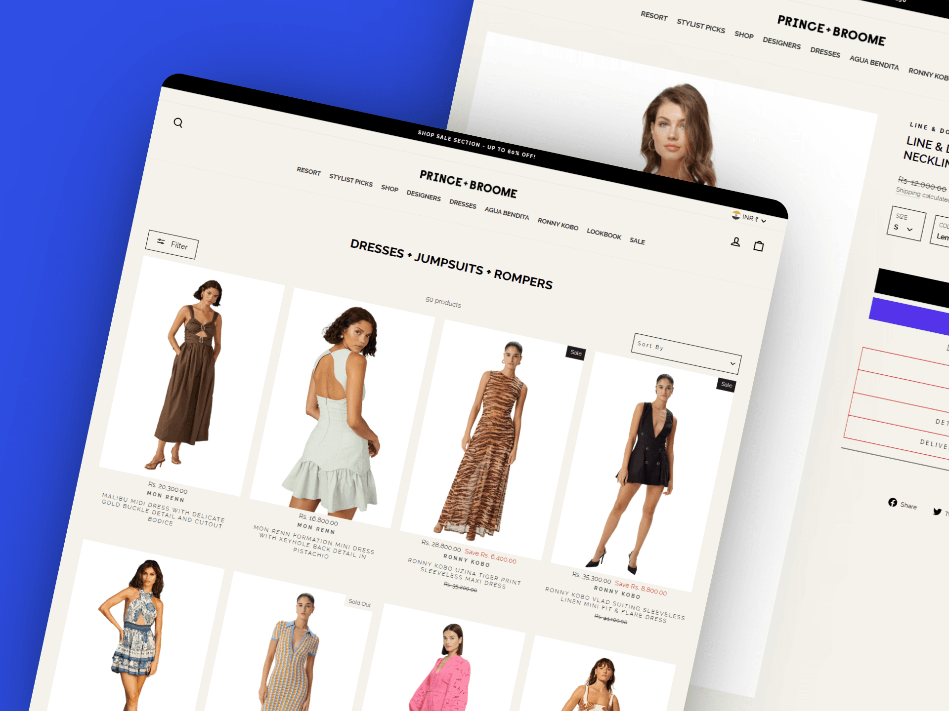 We designed and developed a modern and stylish Shopify webstore for Prince + Broome, ensuring a seamless and engaging shopping experience that reflects the brand’s SoHo-inspired aesthetic. To enhance functionality, we implemented custom JavaScript solutions and Shopify Liquid customizations, tailoring the site to meet specific business needs. Additionally, we designed high-quality visual assets that align with the brand’s identity, creating a polished and cohesive online presence.