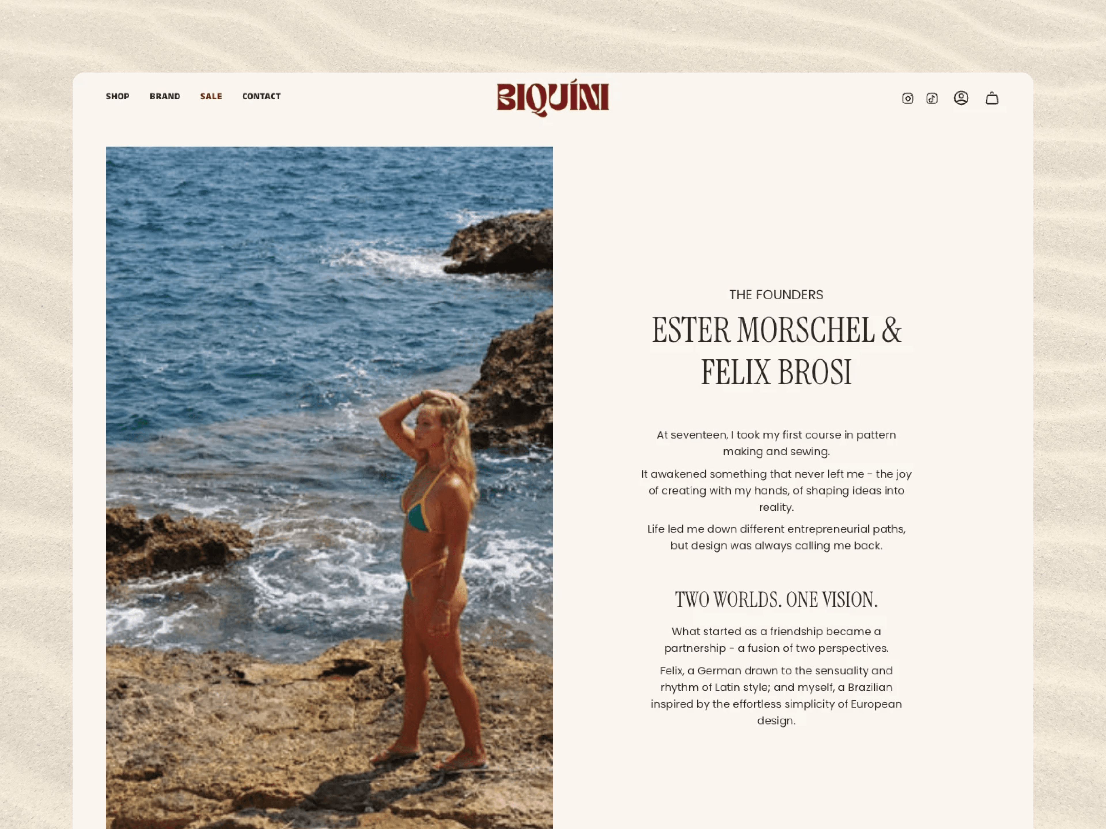 The Perfect Biquini is a luxury swimwear brand founded by Ester Morschel and Felix Brosi, representing a fusion of Brazilian passion and European minimalism. Every piece is handmade with care in a small artisanal workshop in Brazil, using premium, sustainable fabrics. The brand is built on a story of craftsmanship, ethical production, and timeless design, aiming to spread joy and sensuality through products that respect both the body and the planet.