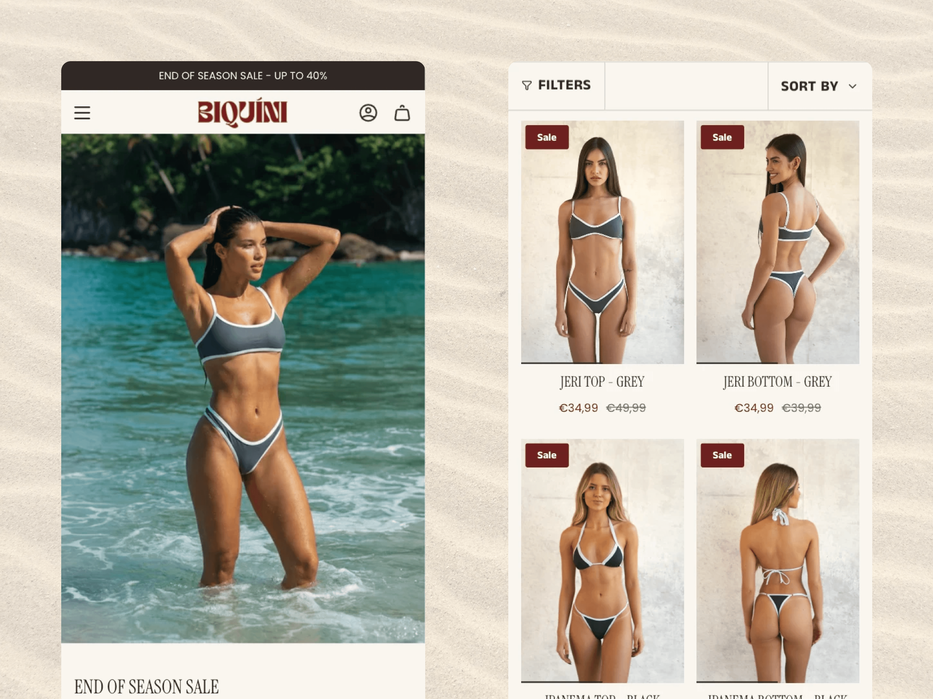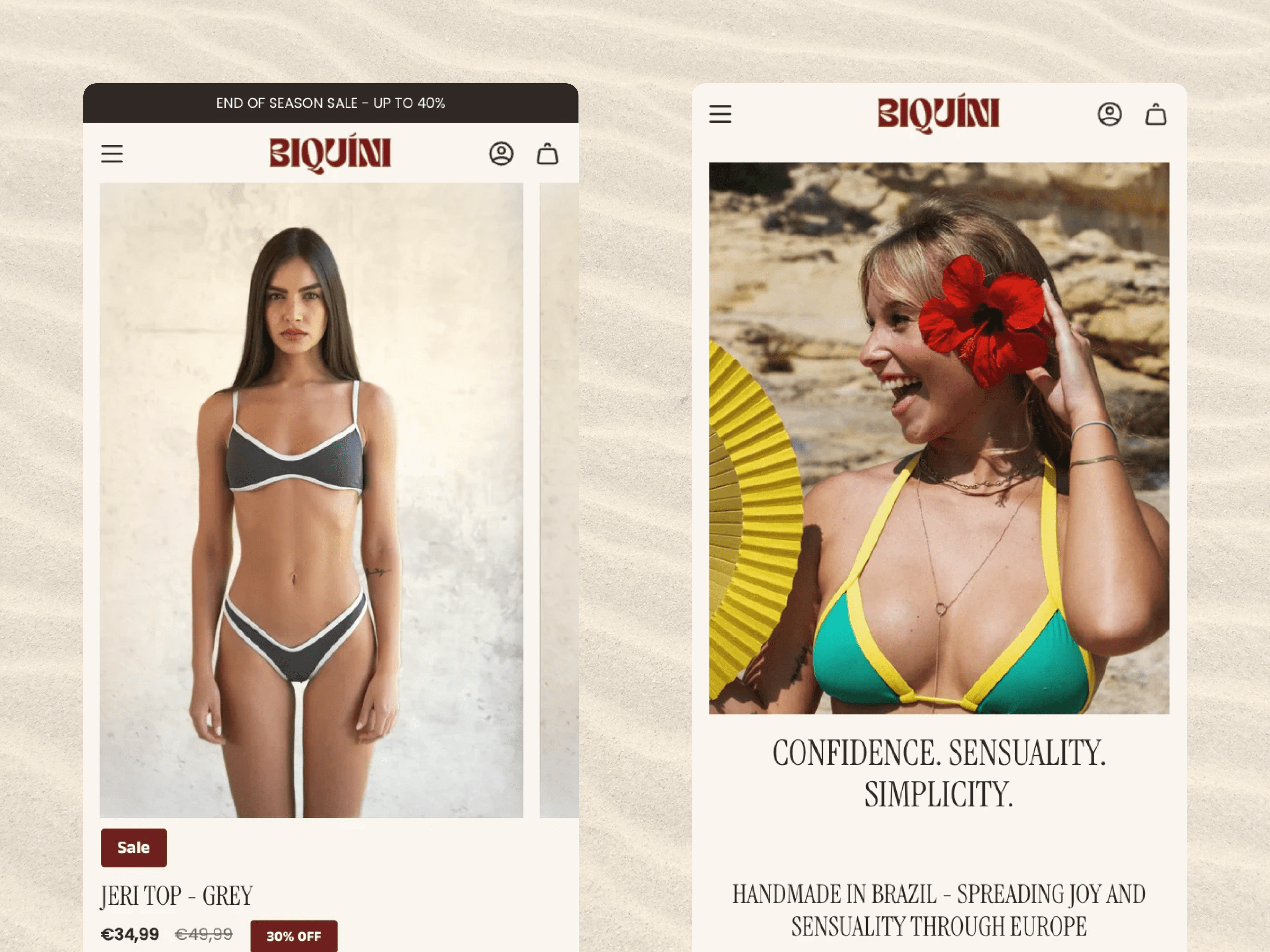 The brand's original online store failed to reflect its high-quality, artisanal identity. The website had a generic, cluttered design that diluted the premium customer experience. The stunning product photography was undermined by a poor layout and slow performance, creating a disconnect between the tangible quality of the biquinis and their digital presentation. This inconsistency risked undermining trust and conversion for a discerning, high-value audience.